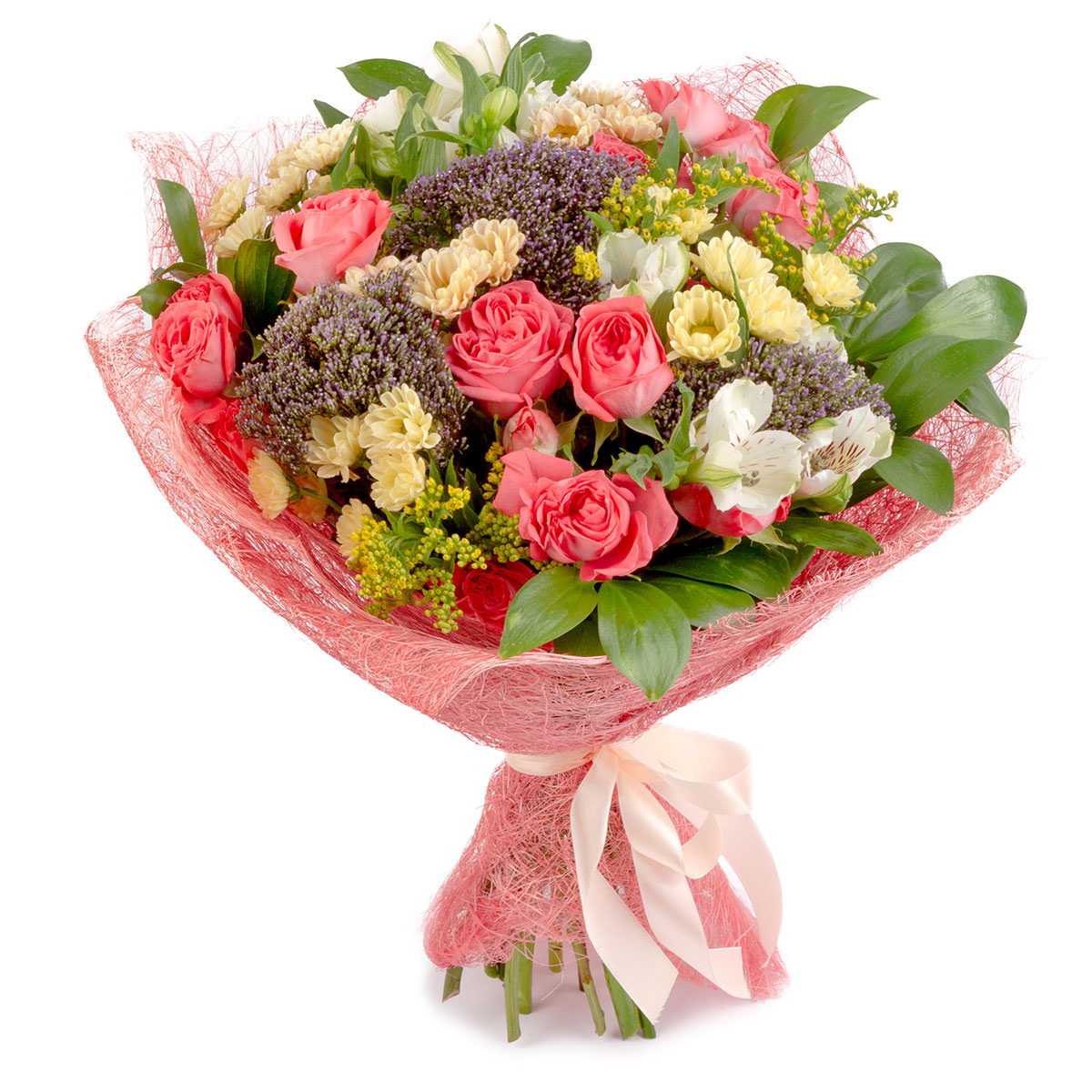 | Состав | Альстромерии, Кустовые розы, Розы, Хризантемы |