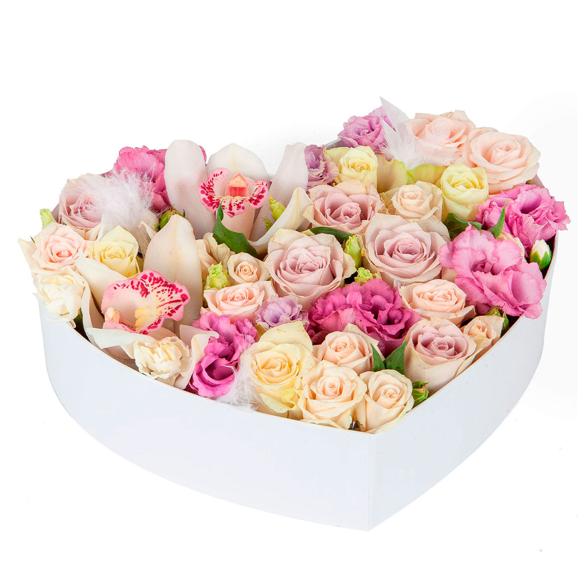 Цветы в коробке «Нежный флер» с доставкой по г Нестеров: вы можете заказать букет в салоне цветов «Флормания» по цене от 2990 руб.